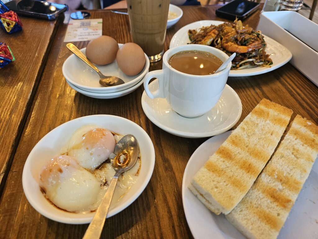 • Kaya Butter Toast & Soft-Boiled Eggs – Classic Malaysian breakfast combo.