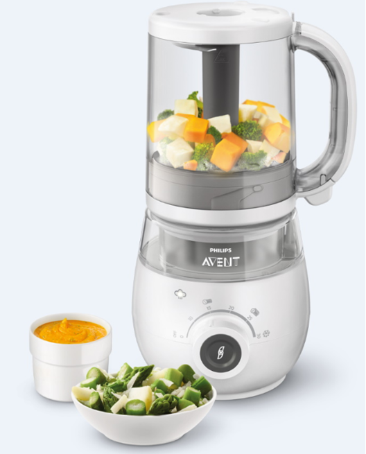 I purchased the Philips Avent 4-in-1 Healthy Baby Food Processor Steamer Blender which allows me to make baby purees conveniently. Step 1: Transfer the ingredient(s) into the jar and steam, Step 2: Turn the jar over and puree until you reach your desired consistency,