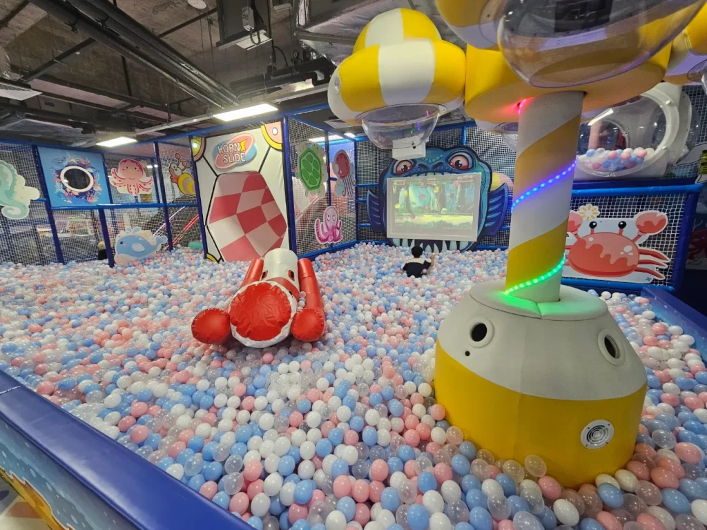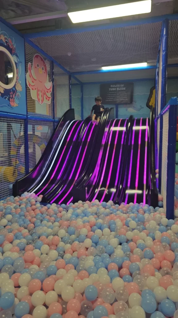 Slides and Ball Pit: A highlight for many, the giant horn slide and LED slides lead into a massive ball pit, offering endless fun and excitement.